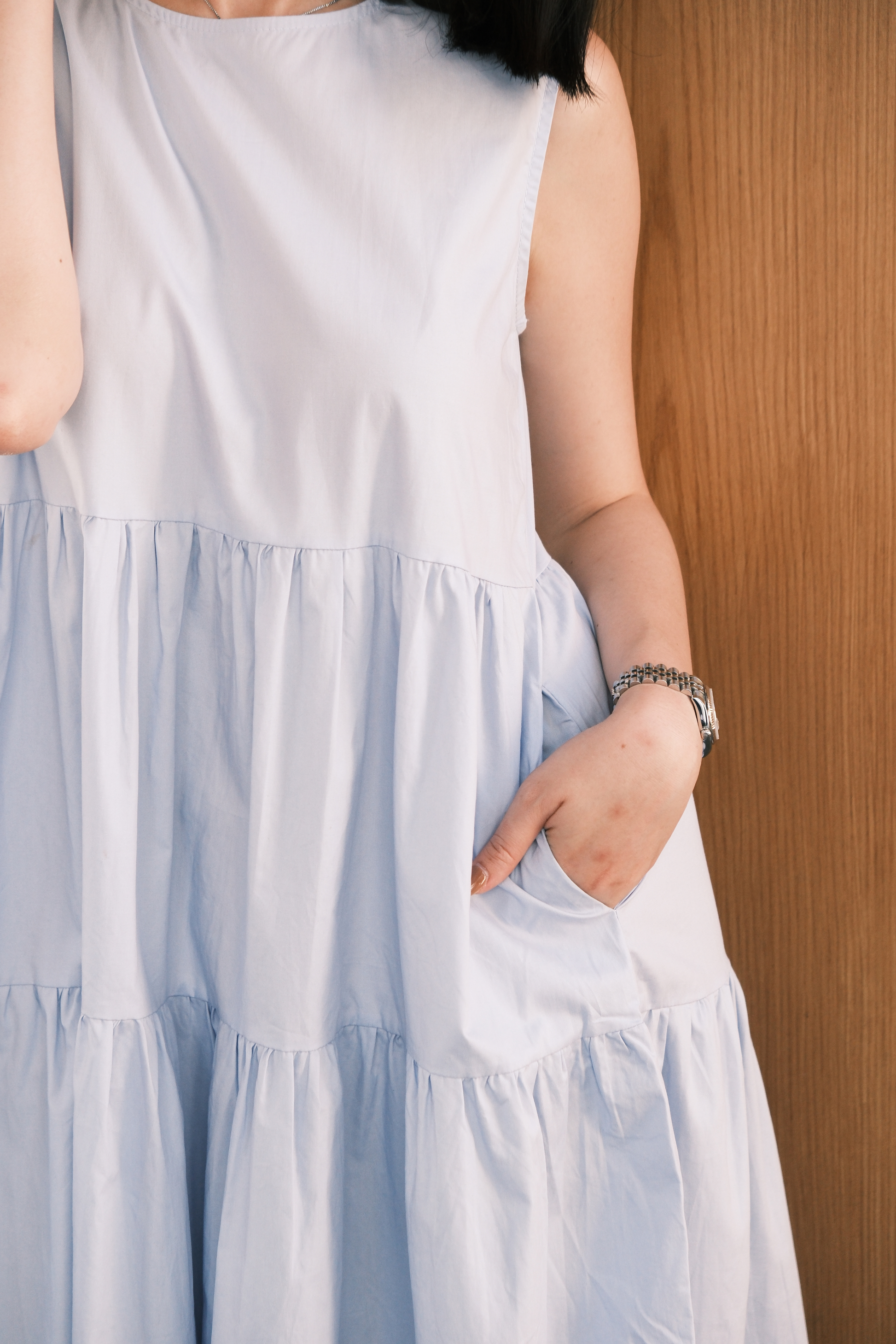 Effortlessly airy and beautifully feminine β the Adele Tiered Sleeveless Maxi Dress features a relaxed A-line silhouette with soft tiered gathers that create natural movement with every step. Designed with a clean round neckline and crafted from a lightweight, breathable fabric, this dress offers both comfort and timeless elegance.
