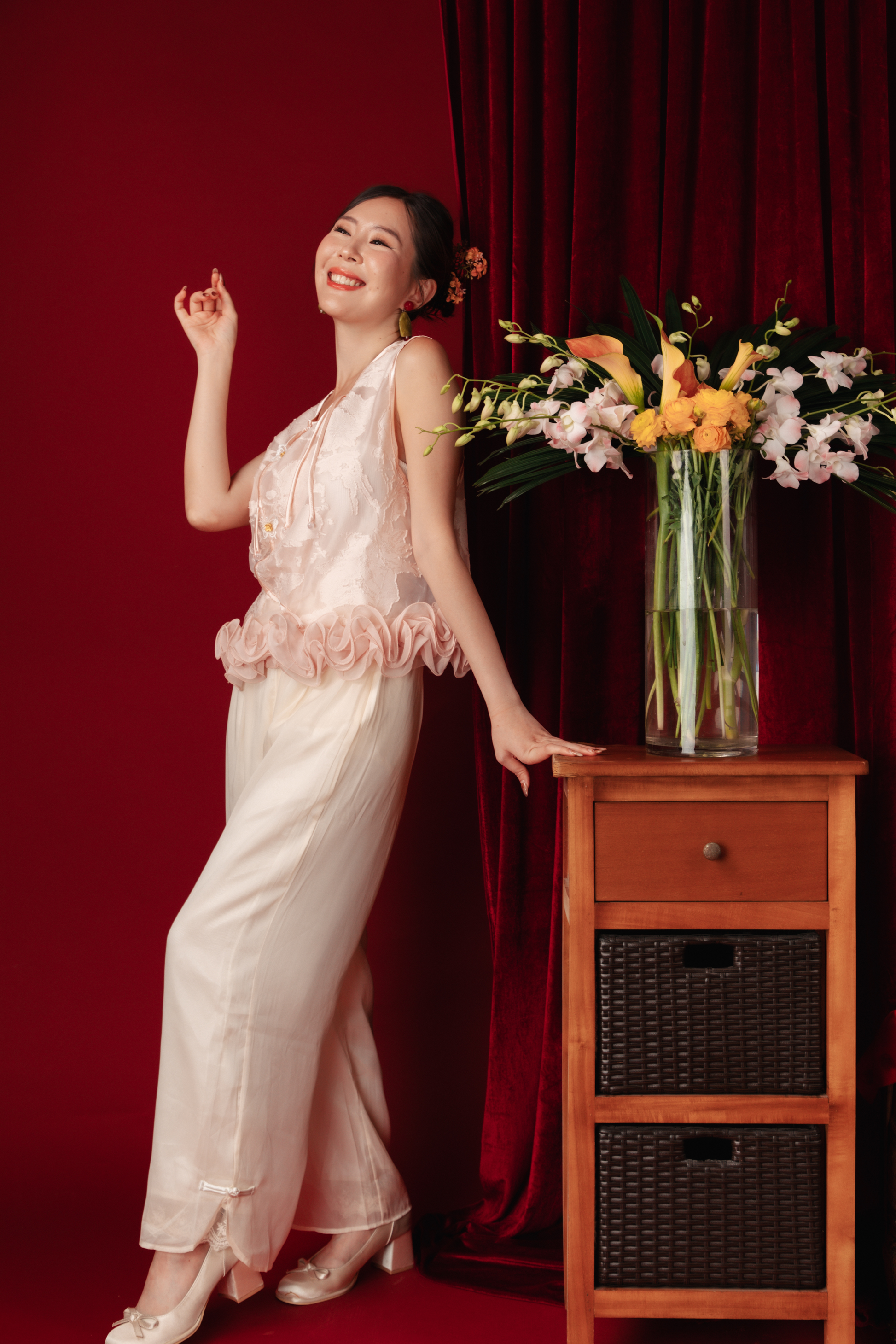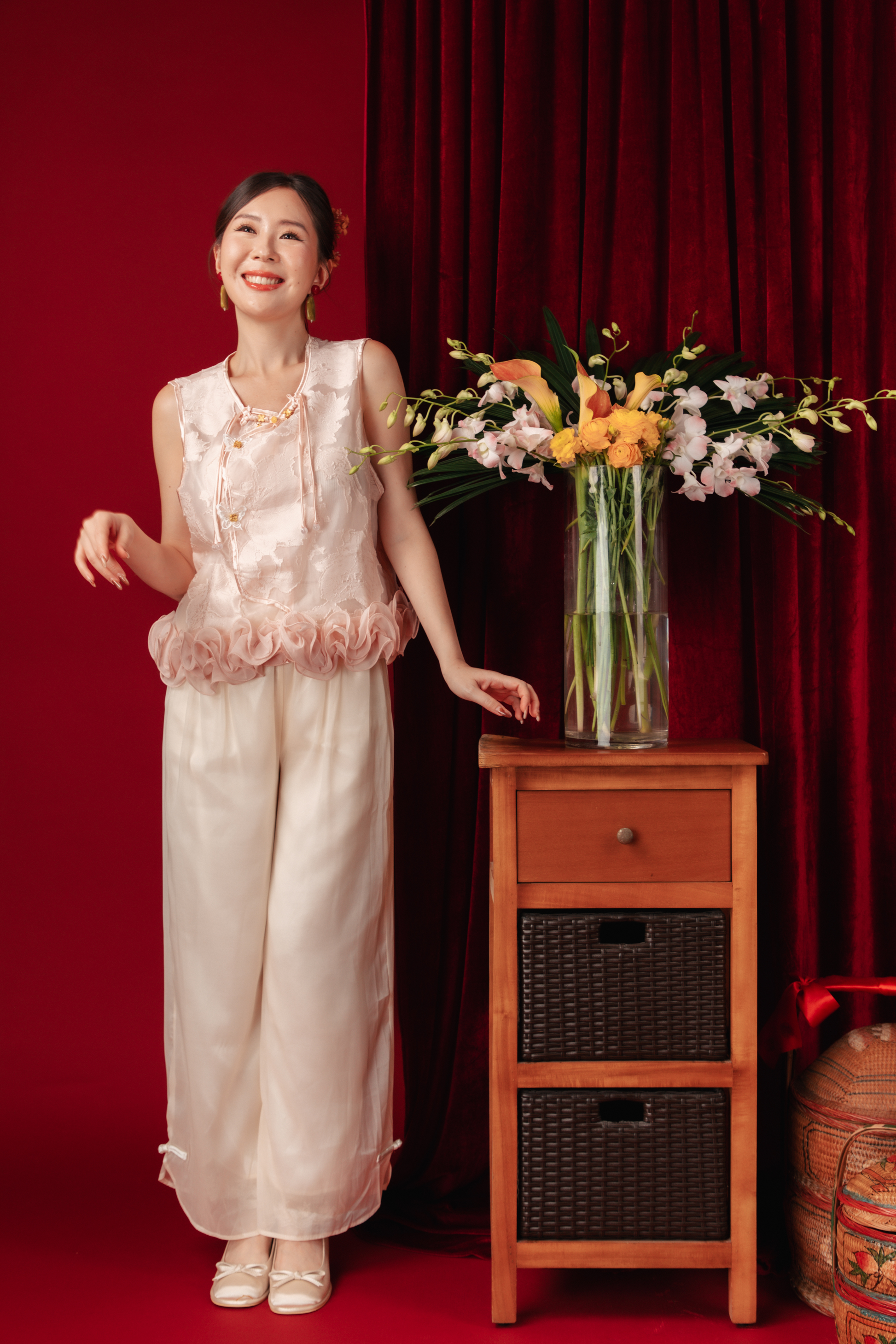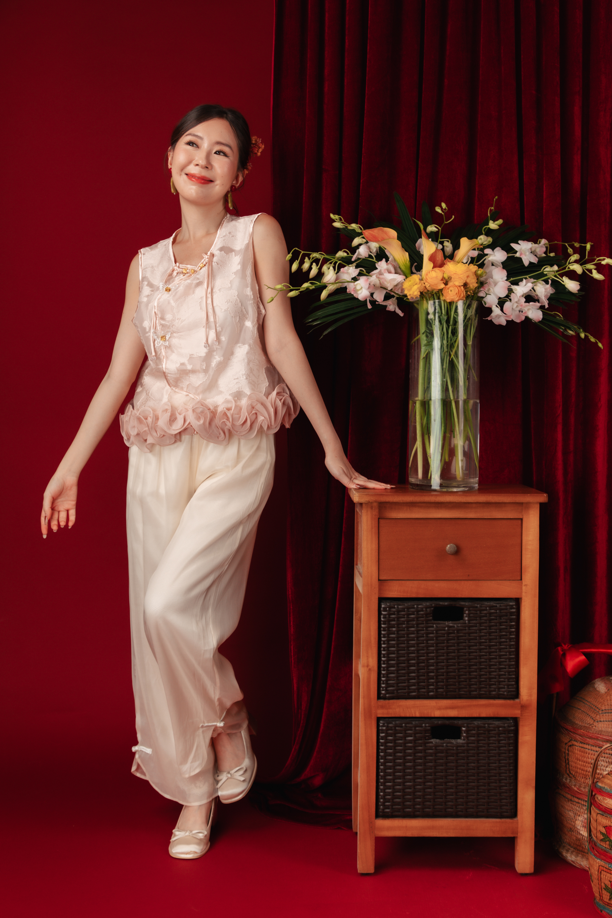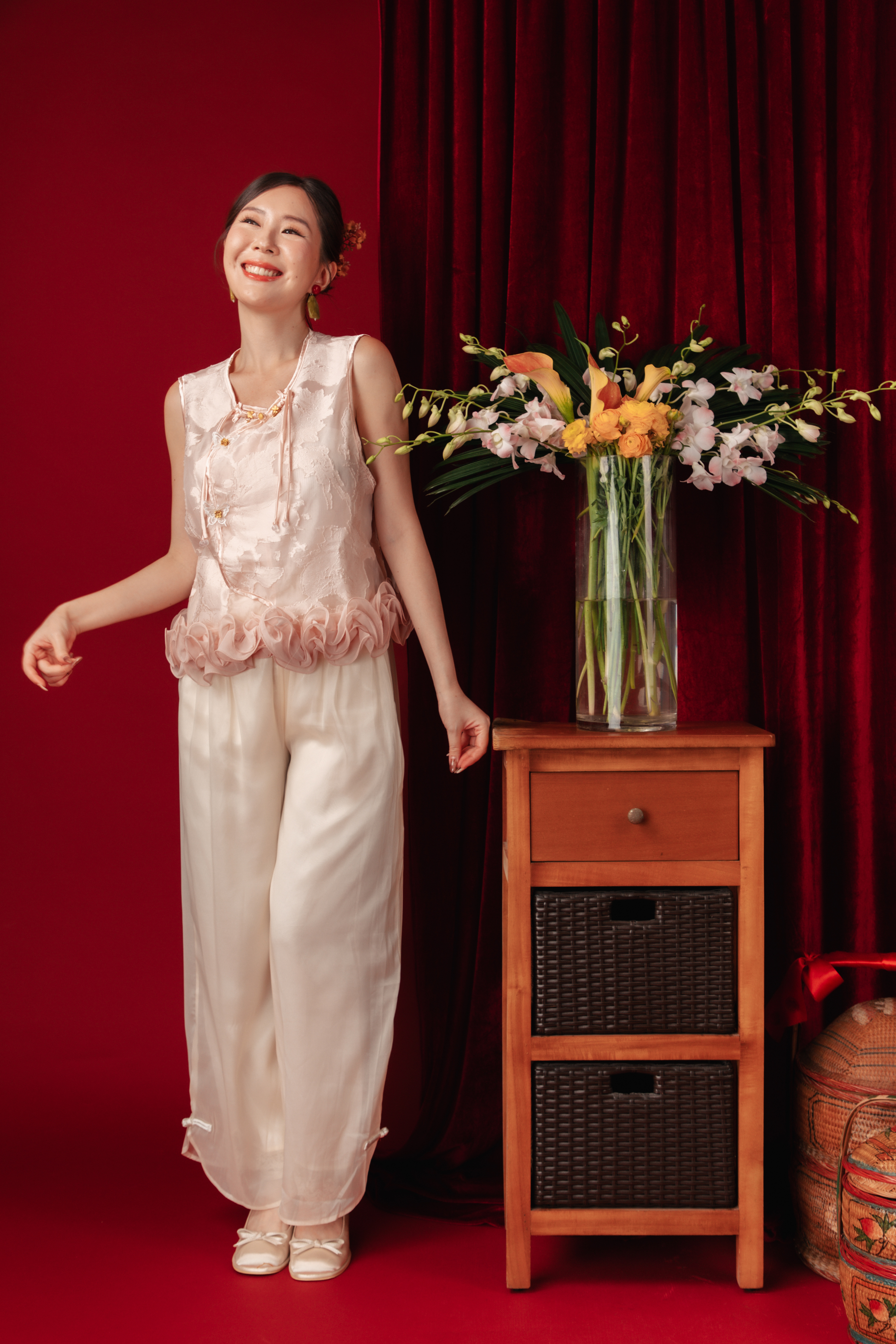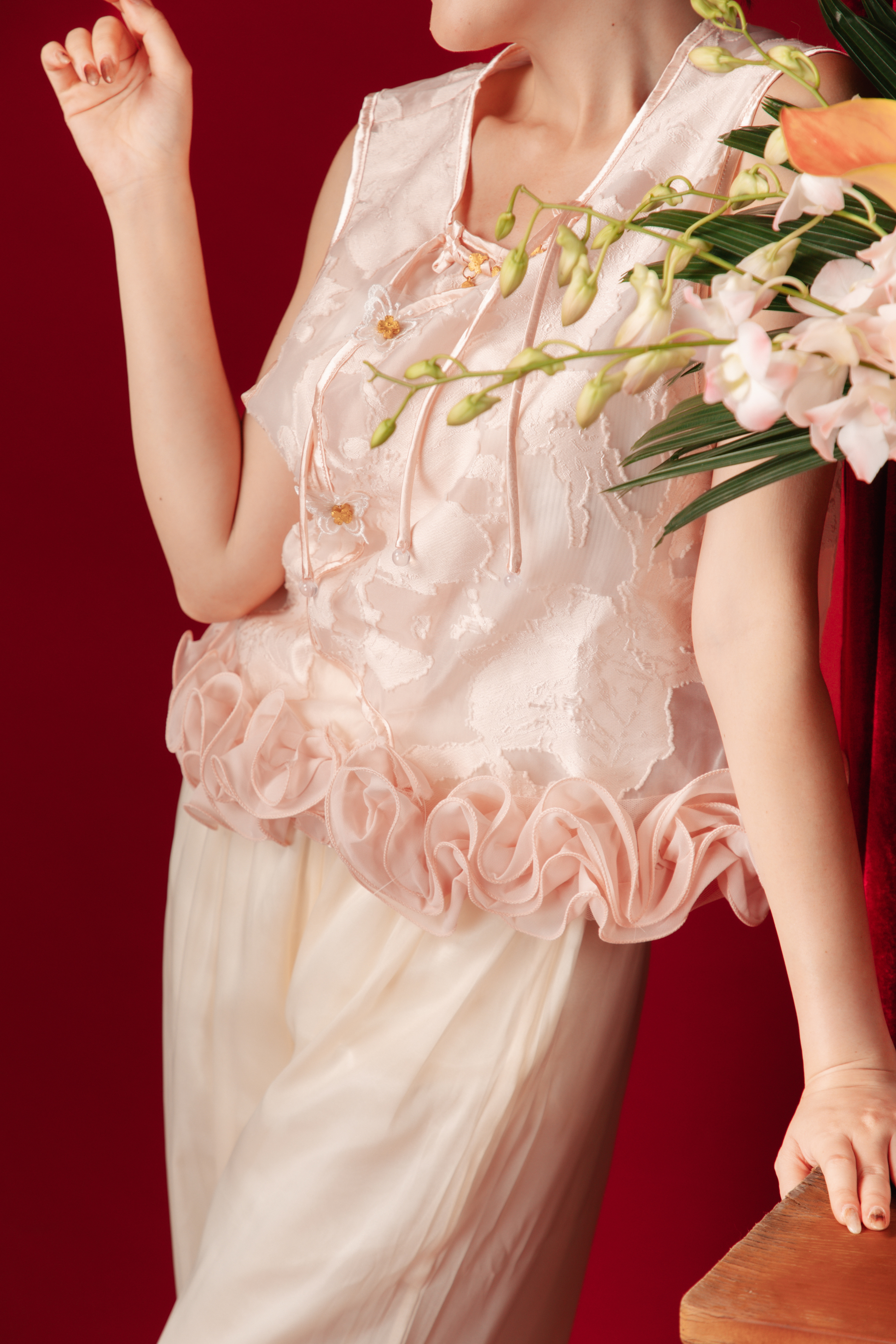 Soft, refined, and delicately feminine β the Amara Blossom Lace Two-Piece Set features a sleeveless floral lace top adorned with ruffled hem details, paired with cream straight-cut pants for effortless balance. Perfect for afternoon gatherings or festive occasions, this set brings a touch of vintage charm with a modern, airy silhouette.