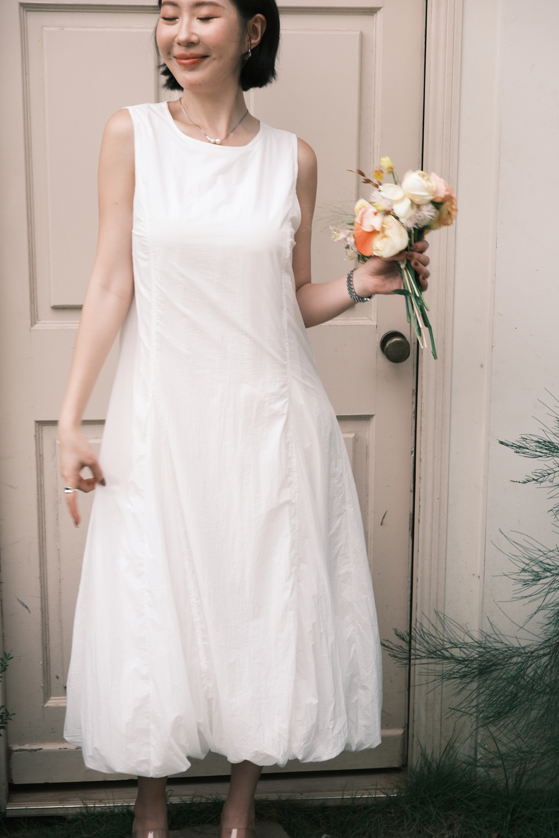 Soft, airy, and effortlessly graceful — the Amélie Cloud Hem Midi Dress captures the charm of modern balletcore. Featuring a sleeveless silhouette with a voluminous cloud-like hem, it brings a touch of romantic elegance to your everyday style. Pair it with flats or heels for a refined, feminine look that moves beautifully with you.