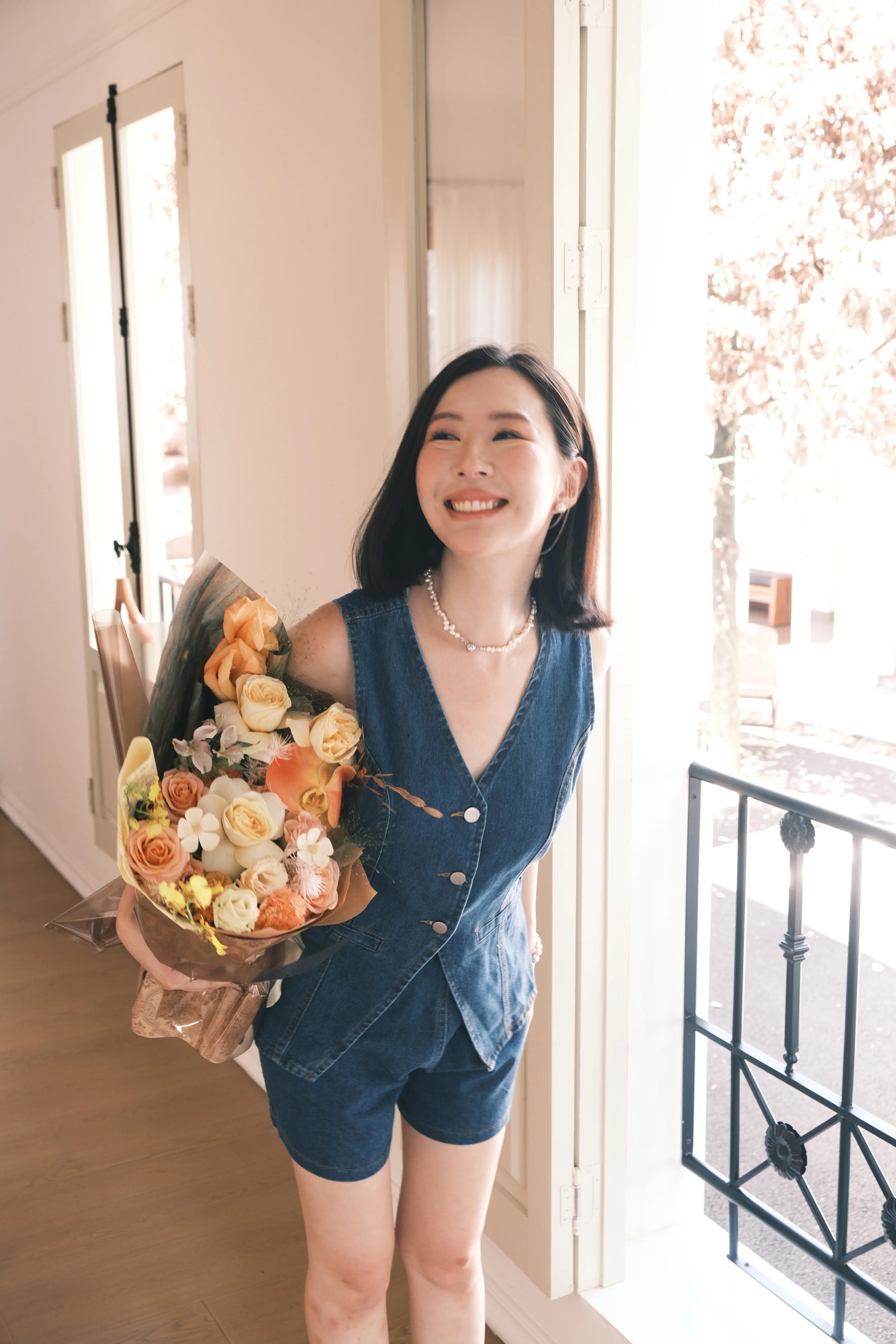 Ava Denim Vest & High-Waist Shorts Set