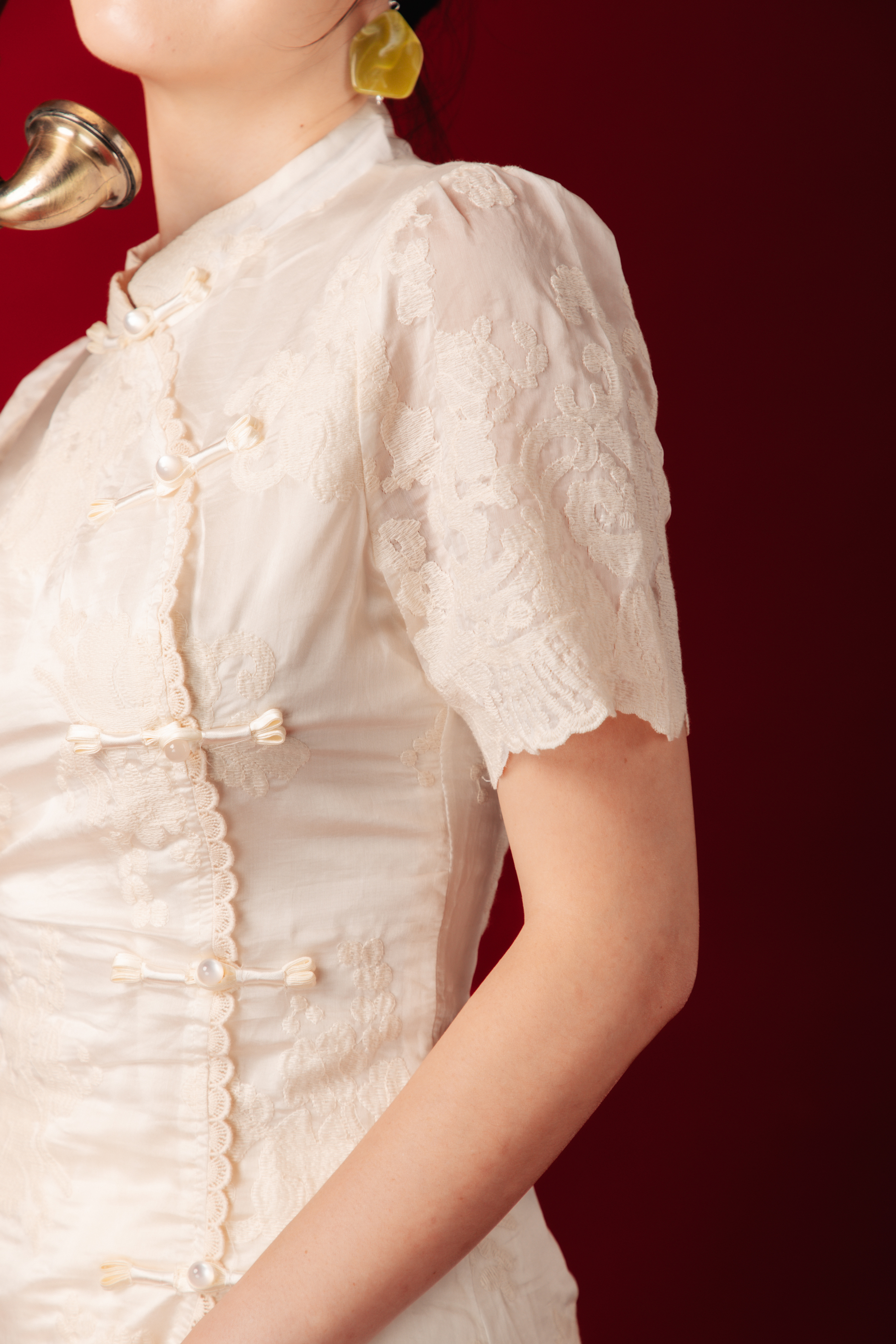 A graceful harmony of elegance and ease β the Clara Floral Lace Two-Piece Set features delicate floral lace embroidery paired with matching inner shorts for comfort and coverage. Adorned with traditional knot buttons and scalloped lace trims, this timeless ivory ensemble captures feminine charm with a modern twist β perfect for festive gatherings or elegant afternoons.