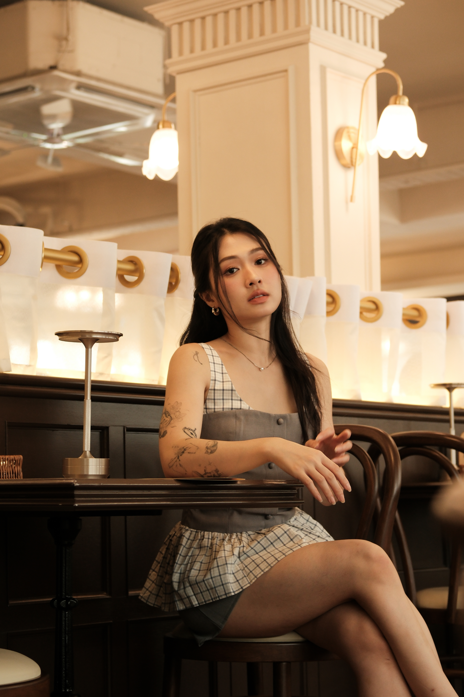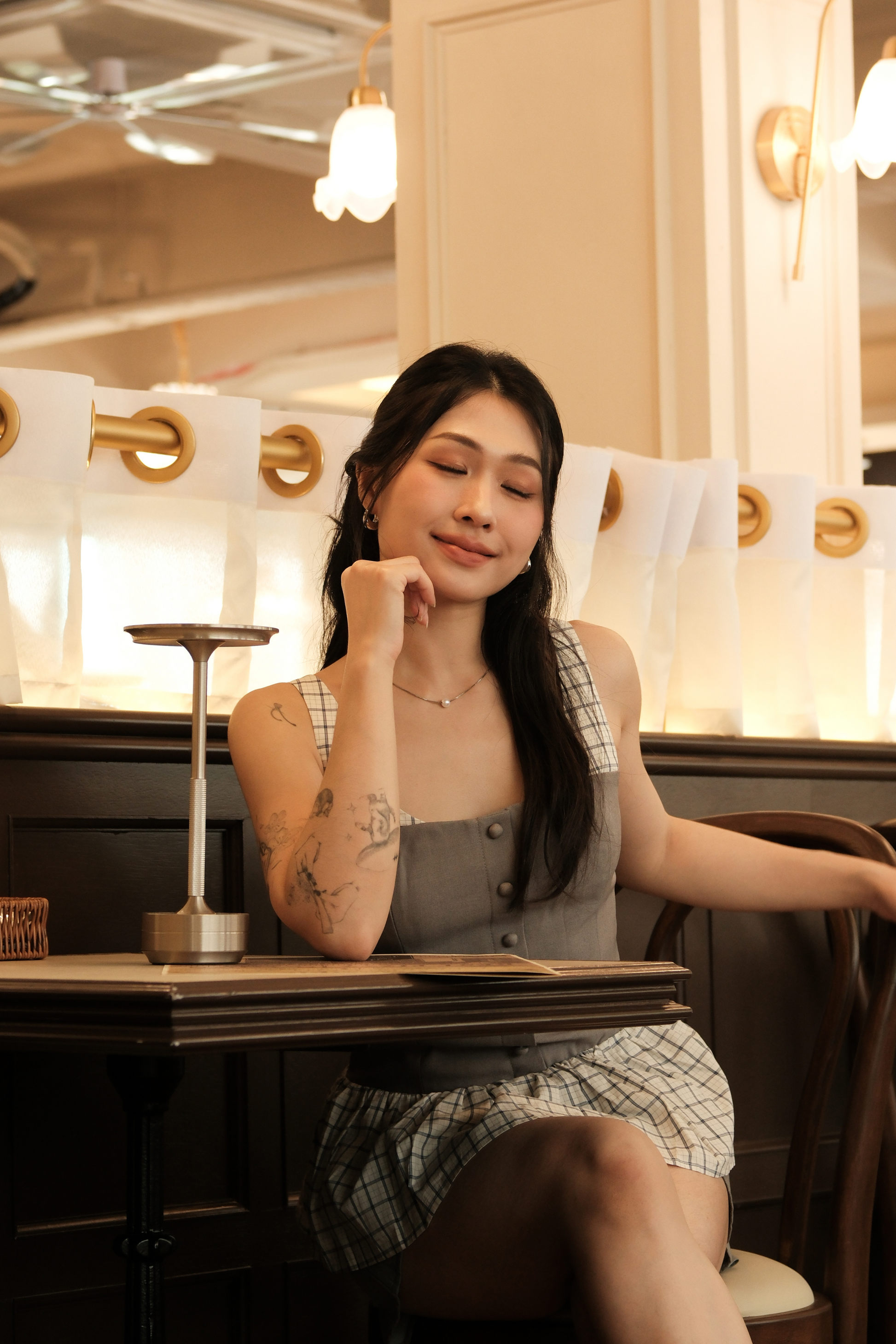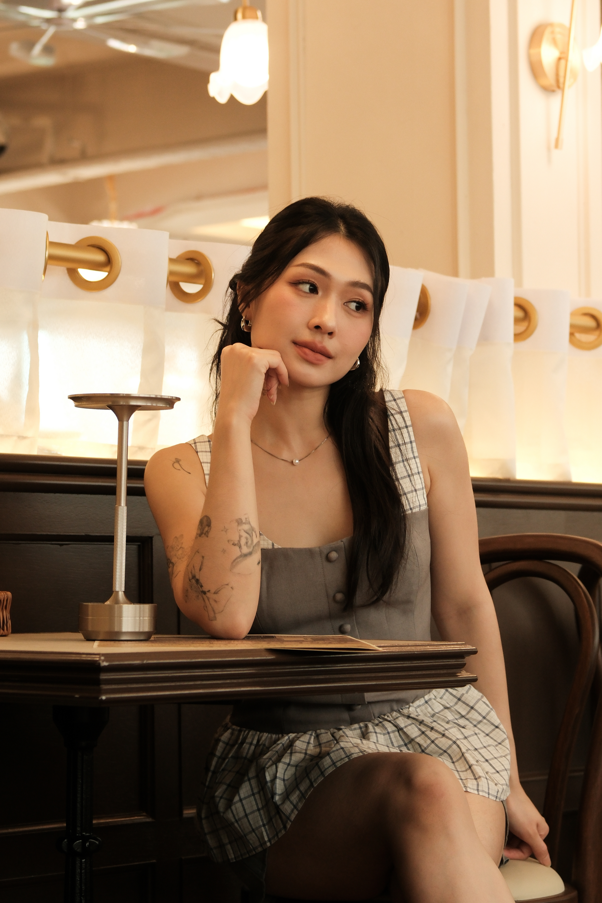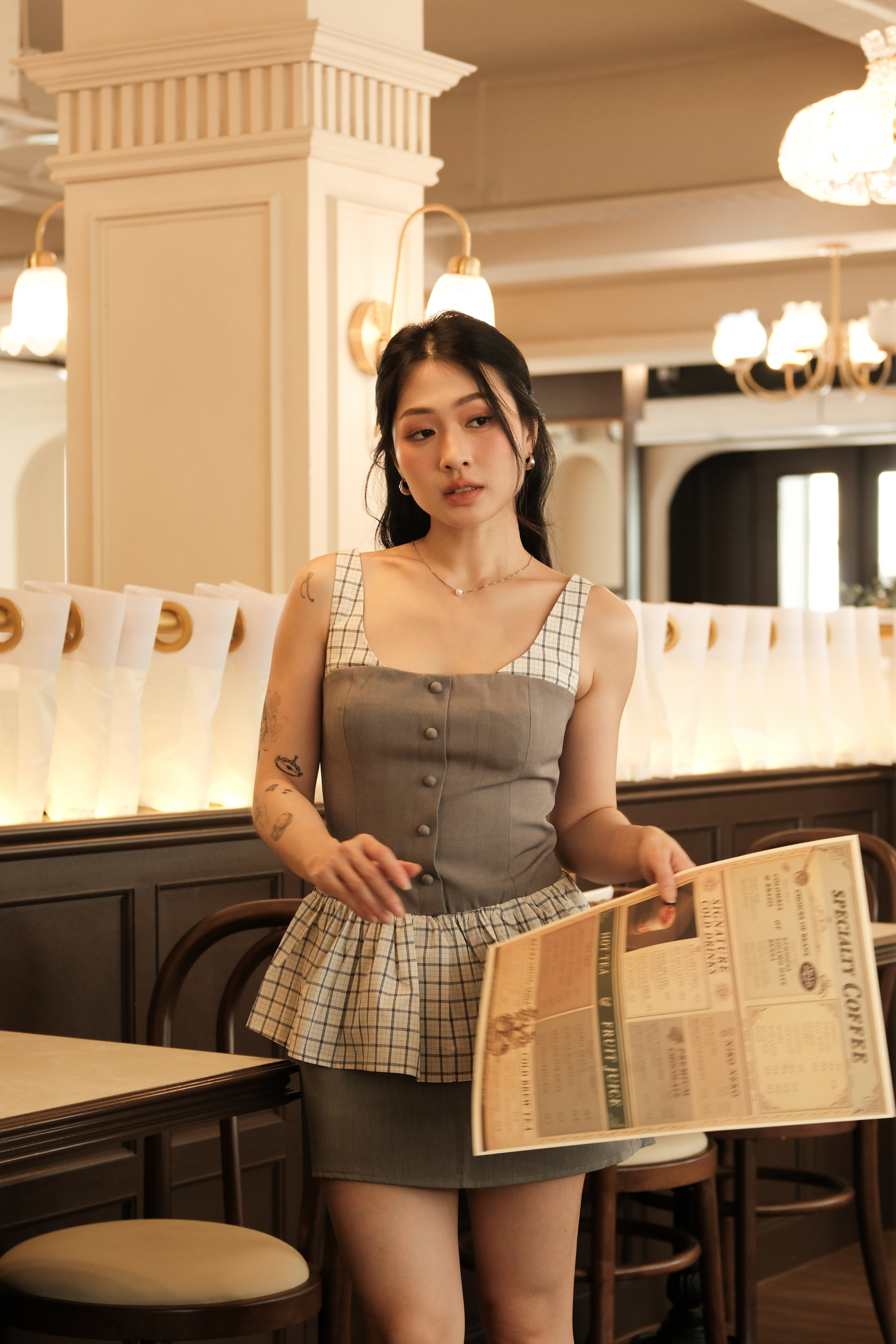 Part of the Belle Club Luxe Édition, the Clémence Top blends timeless tailoring with playful charm. Designed with a structured corset-inspired bodice in deep navy, it flows into a soft checked peplum hem for a flattering silhouette that moves with ease. Wide check-pattern straps add balance and comfort, while the smocked back ensures the perfect fit.