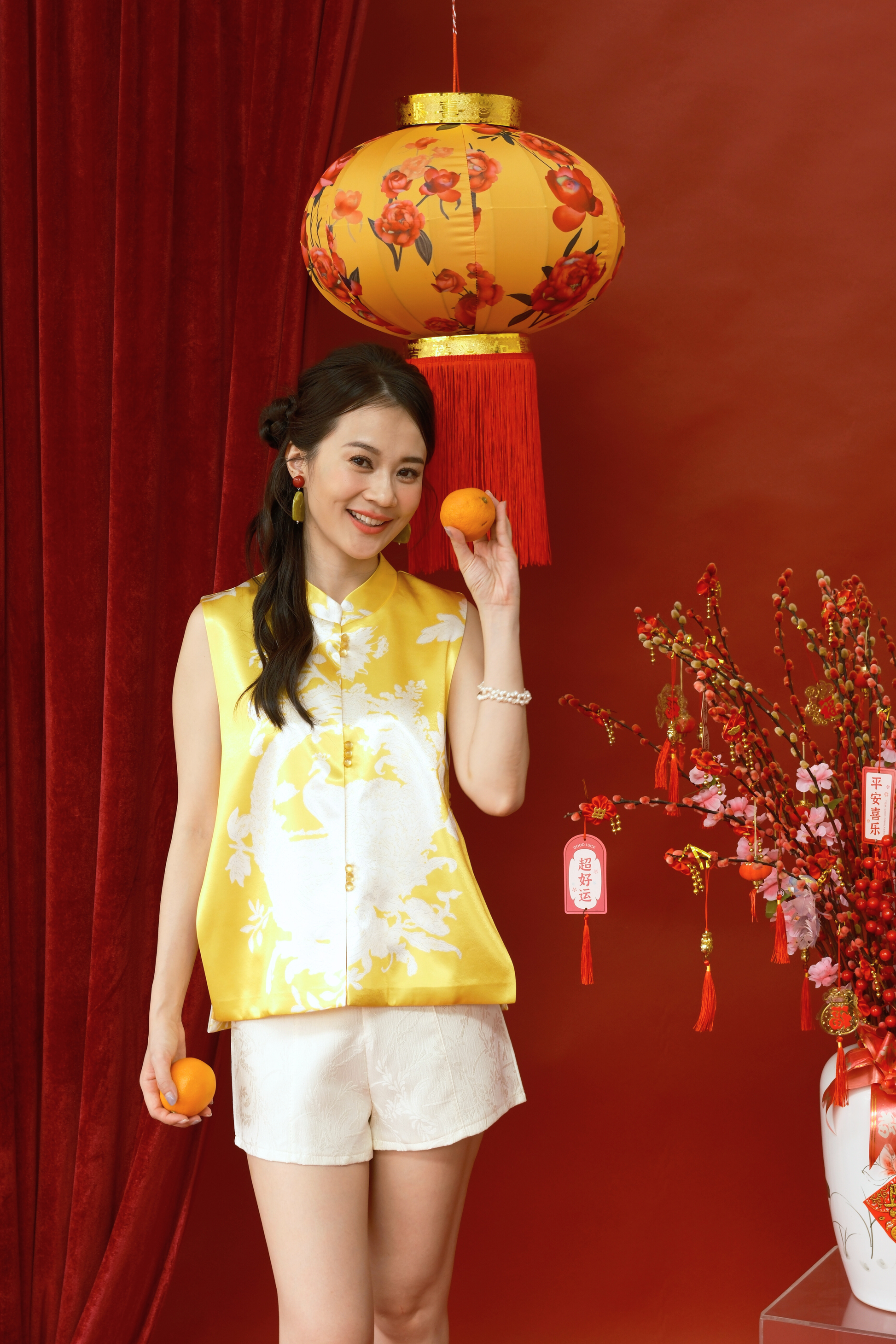 A radiant blend of elegance and heritage, the Florence Brocade Mandarin Vest is crafted from glossy jacquard satin with an exquisite woven peacock motif. The sleeveless silhouette and clean mandarin collar offer a modern twist to this traditional Tang-inspired pieceโideal for adding a festive glow to your Lunar New Year look.