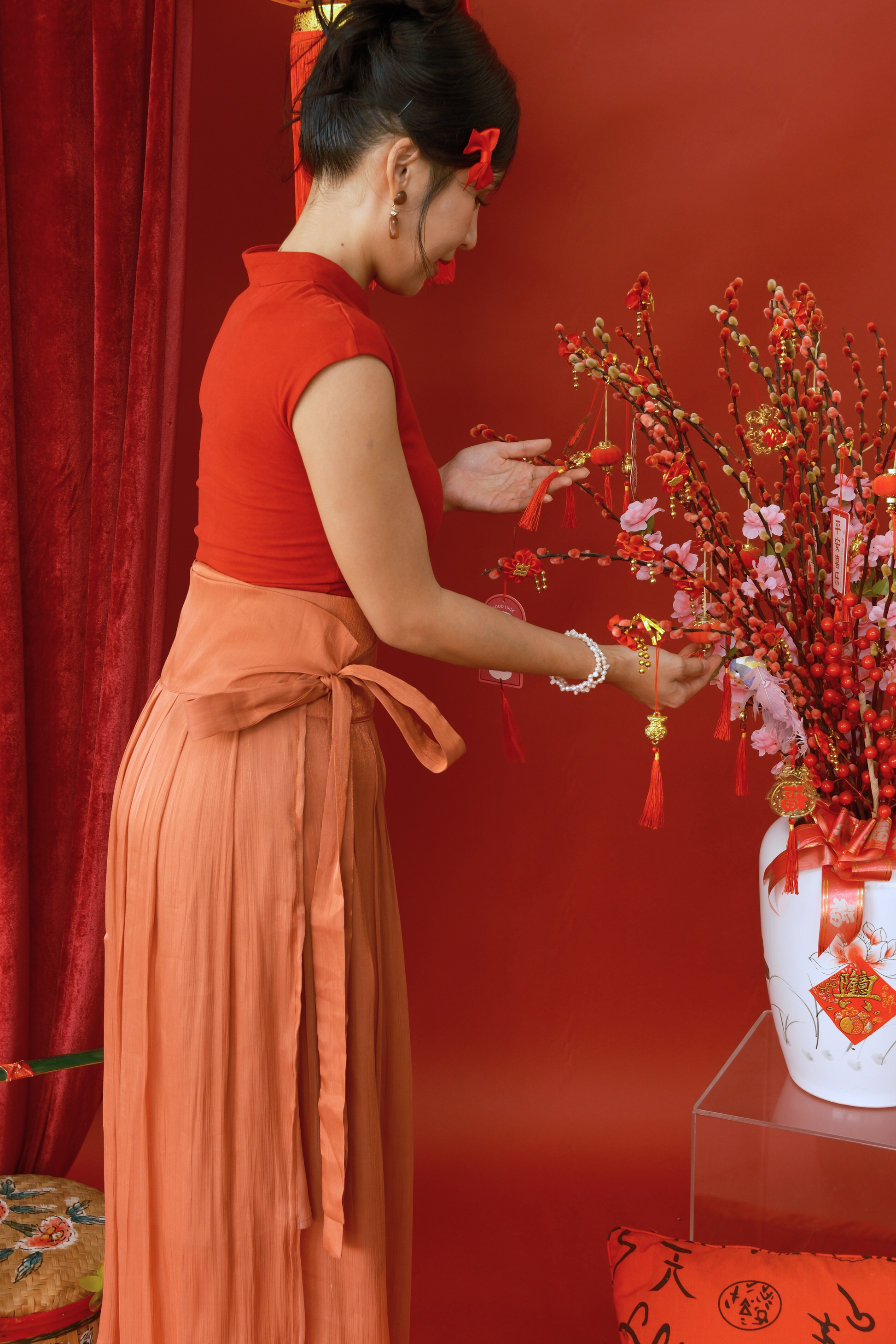 The Juliette Mesh Hanfu Set reimagines traditional elegance for the modern muse. Featuring a fitted knit cheongsam-inspired top with a keyhole neckline and a flowy mesh maxi skirt with side tie details, this two-piece ensemble flatters petite frames while evoking timeless Lunar New Year charm. Light, breathable, and beautifully layeredโperfect for celebrations and beyond.