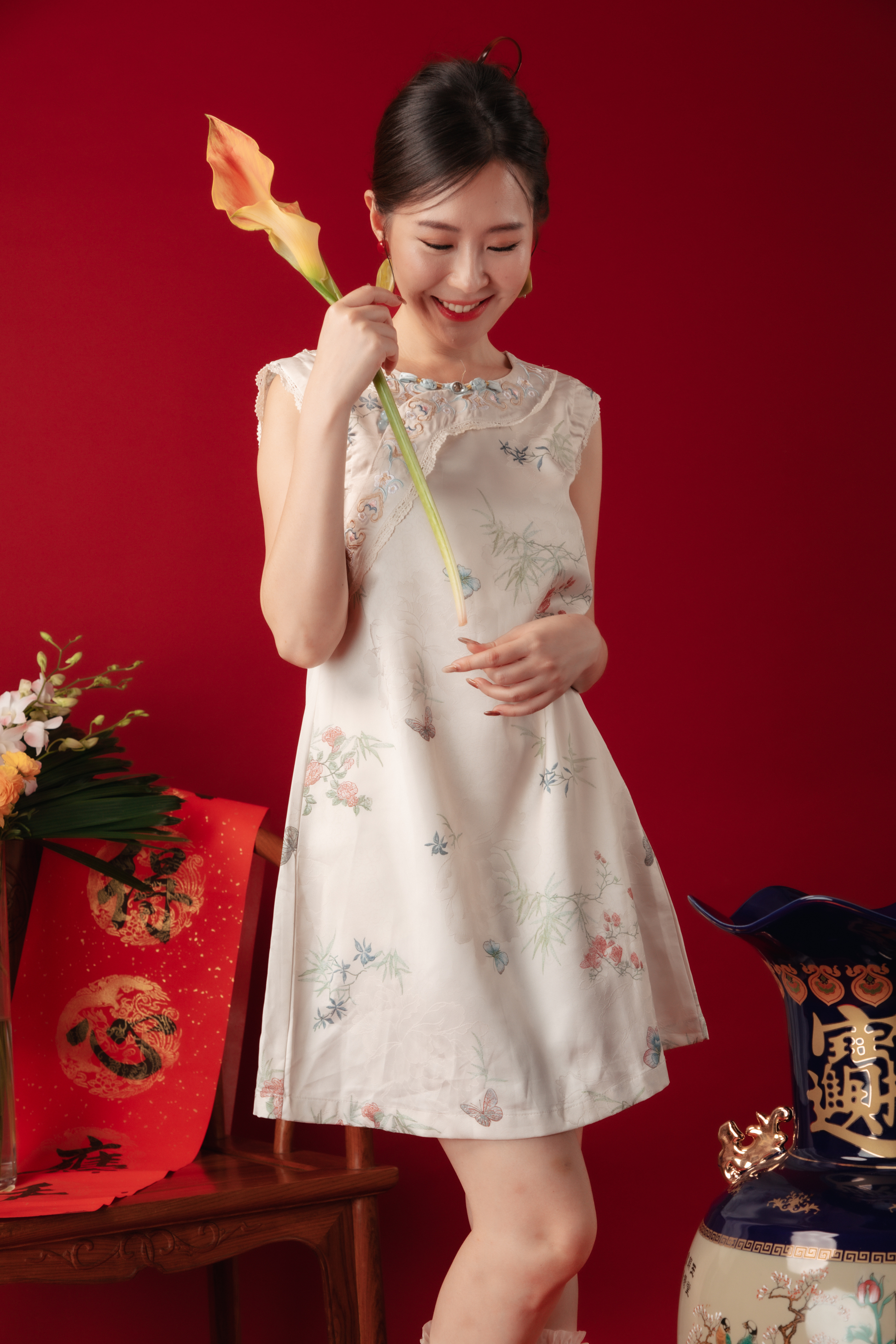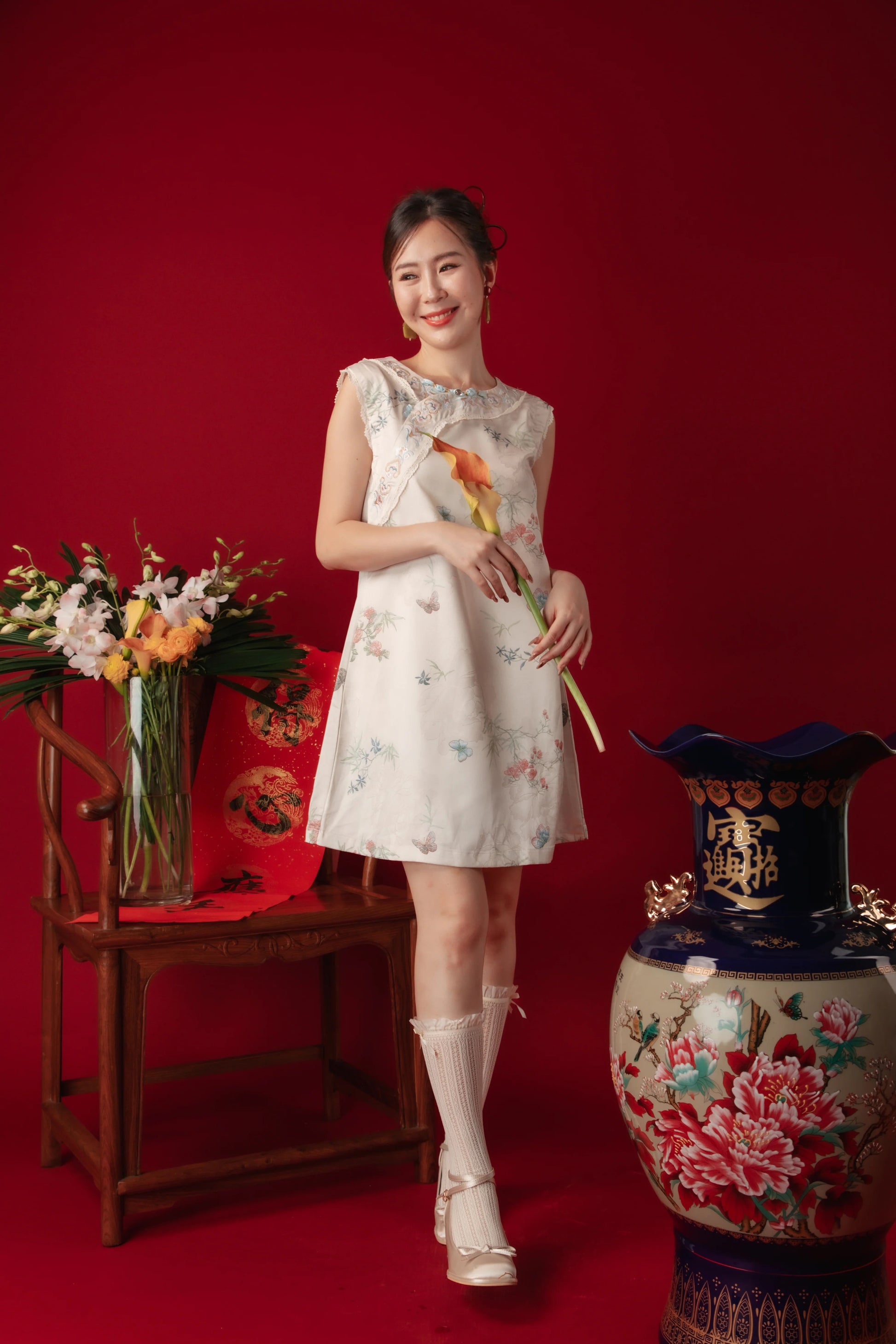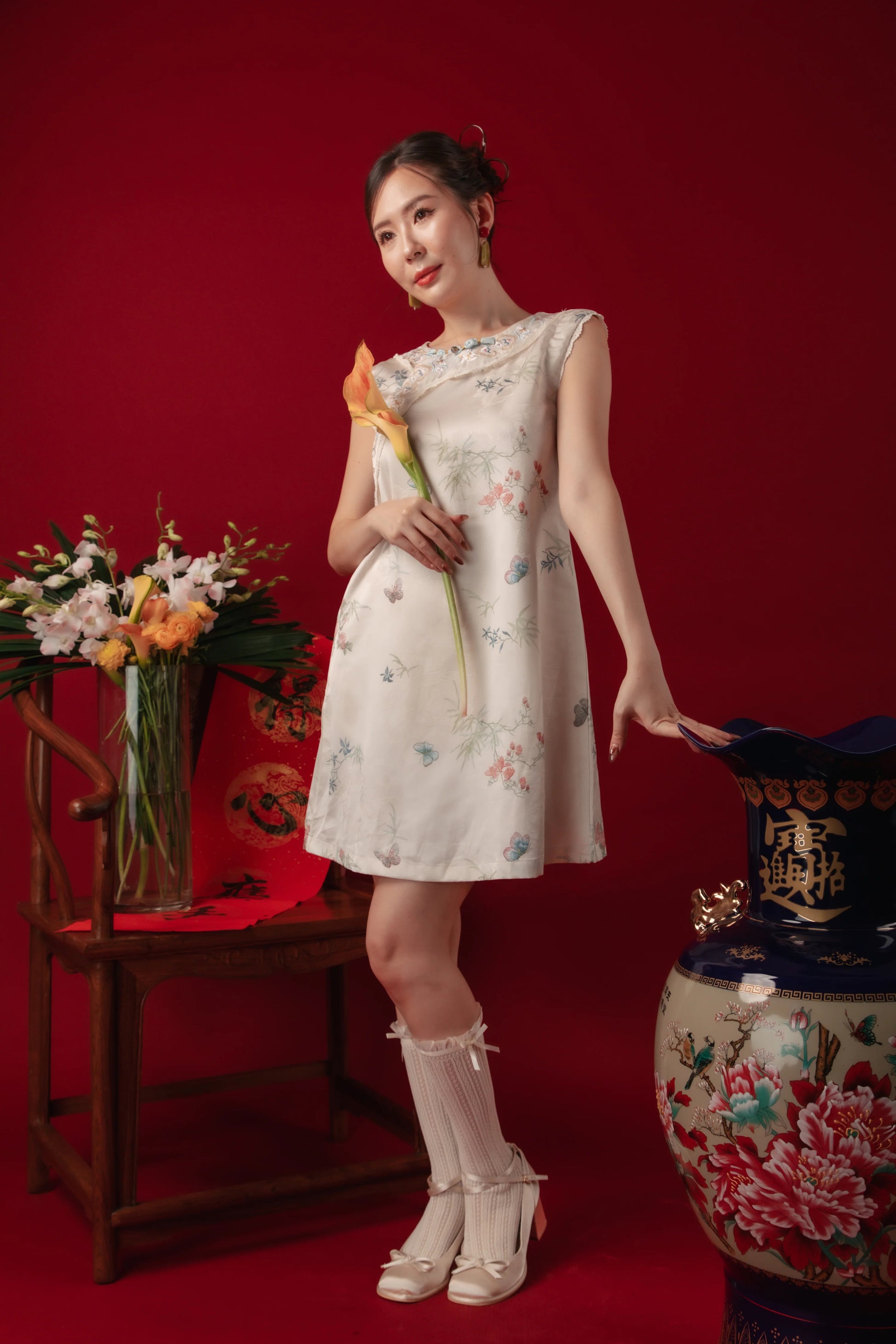 Graceful and timeless — the Iris Blossom Jacquard Cheongsam Dress captures modern femininity through delicate oriental florals and a soft satin sheen. The sleeveless silhouette and subtle A-line cut create an effortlessly flattering shape, perfect for festive gatherings or elegant daytime occasions.