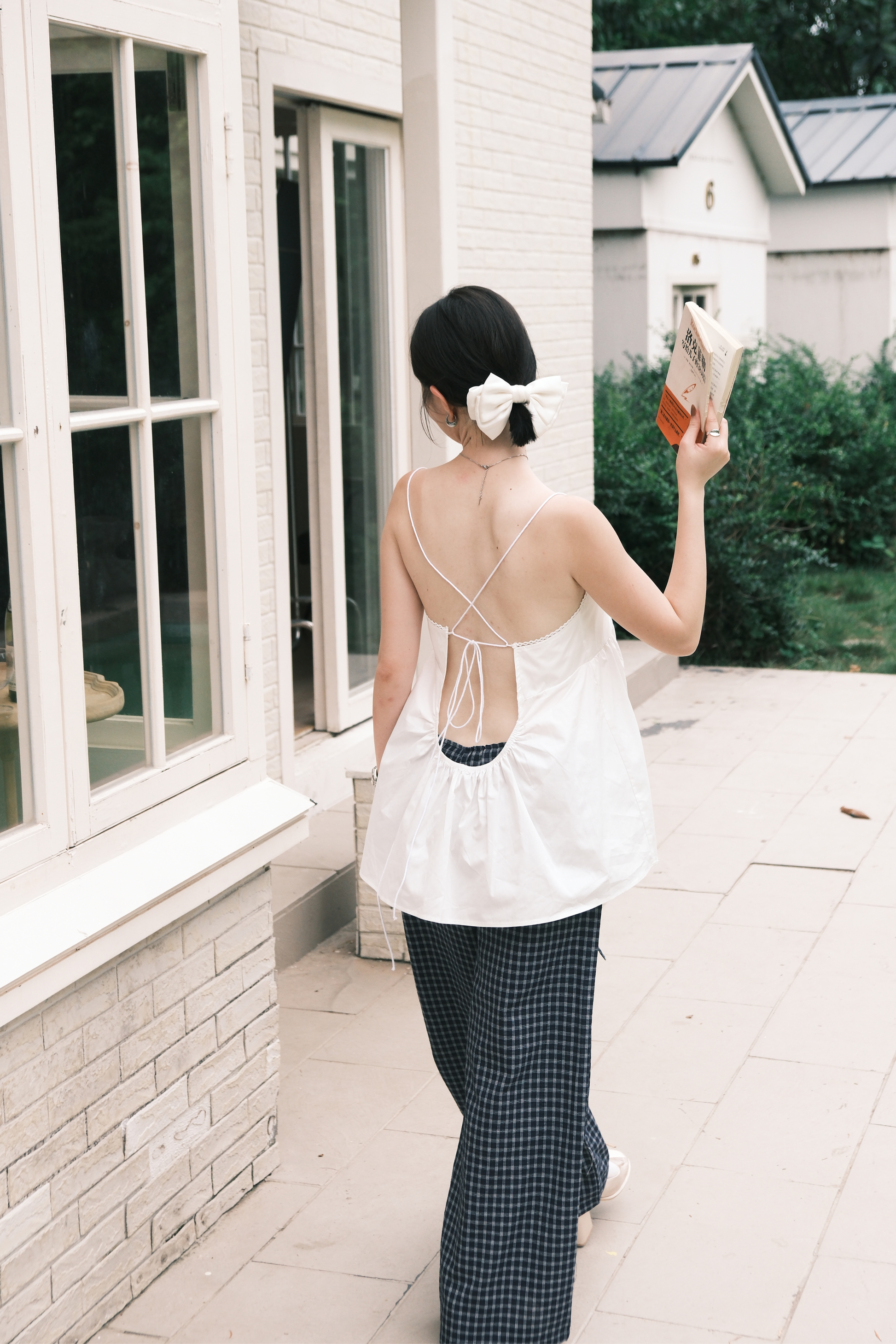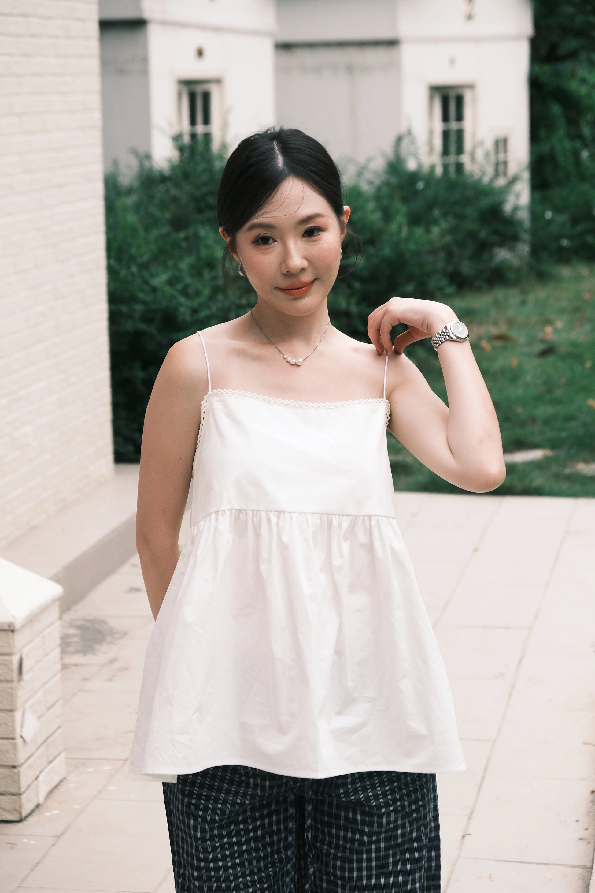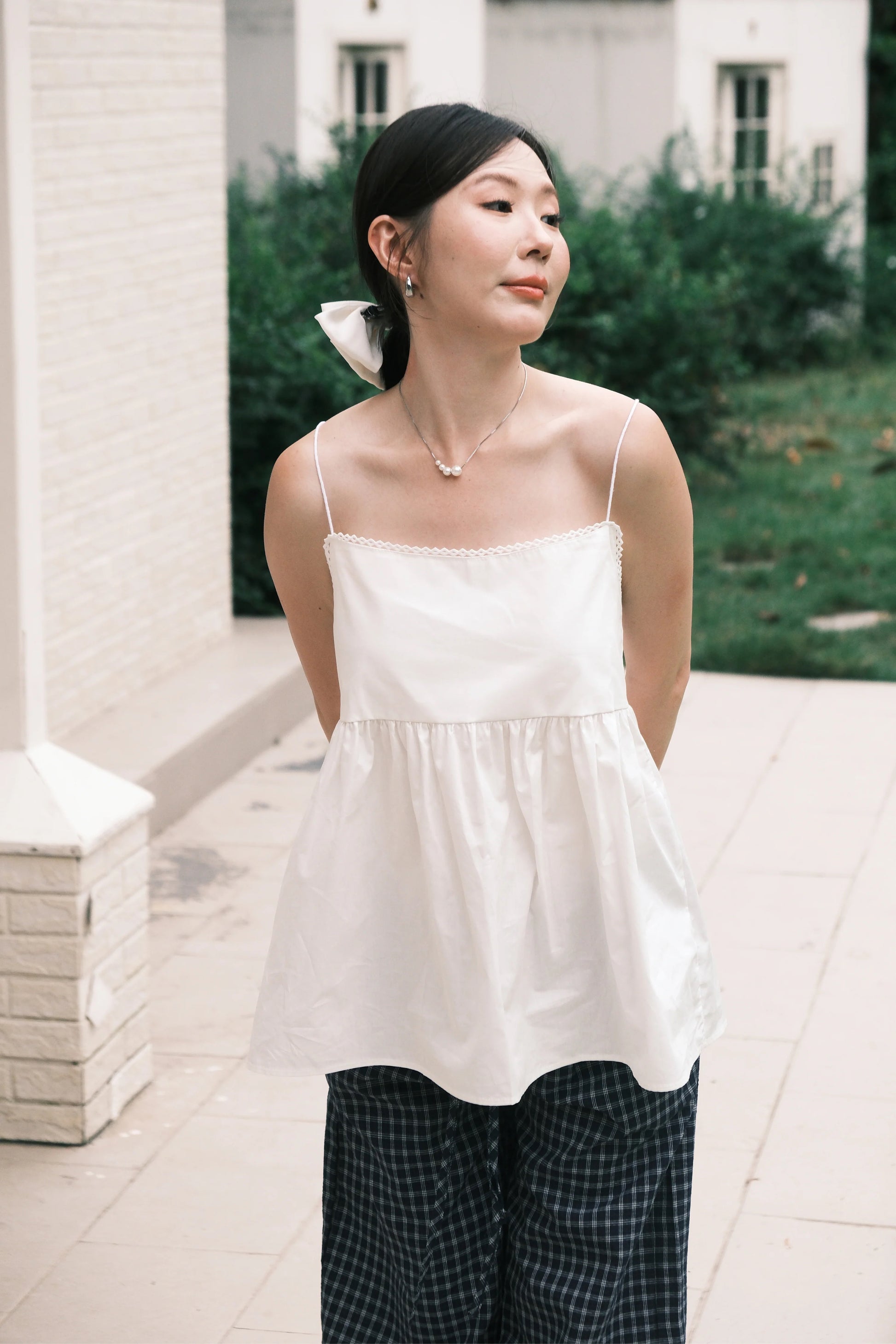 Isla Open-Back Lace Trim Cami Top in White