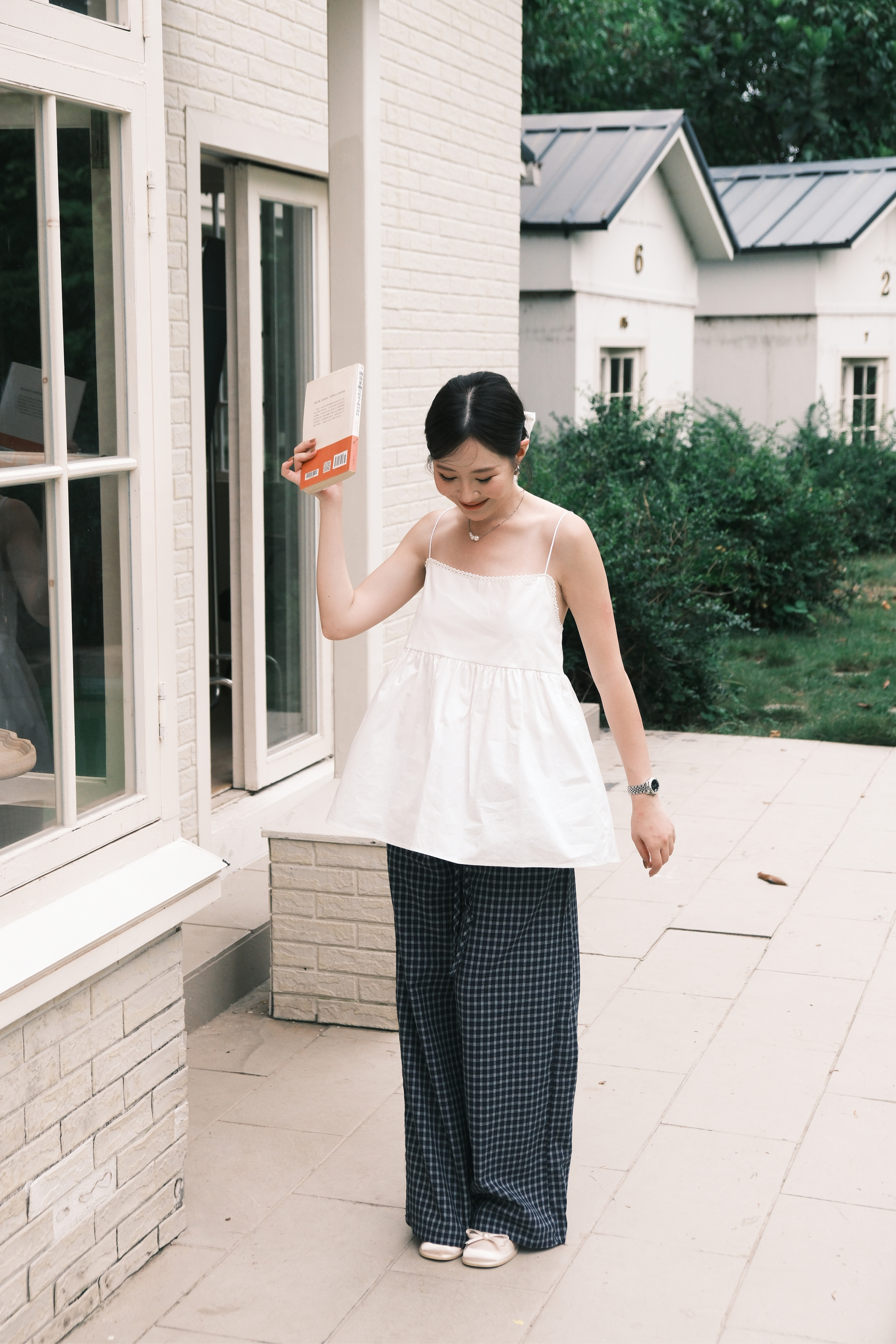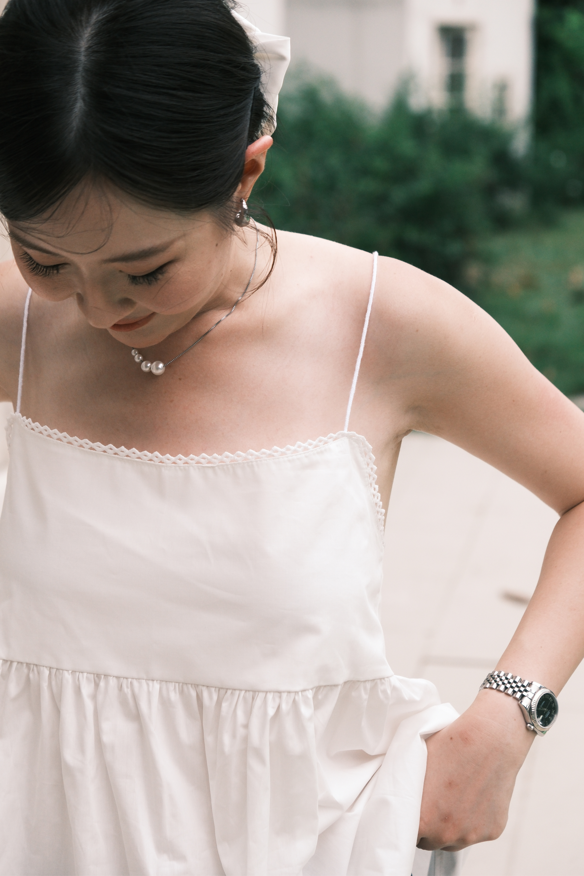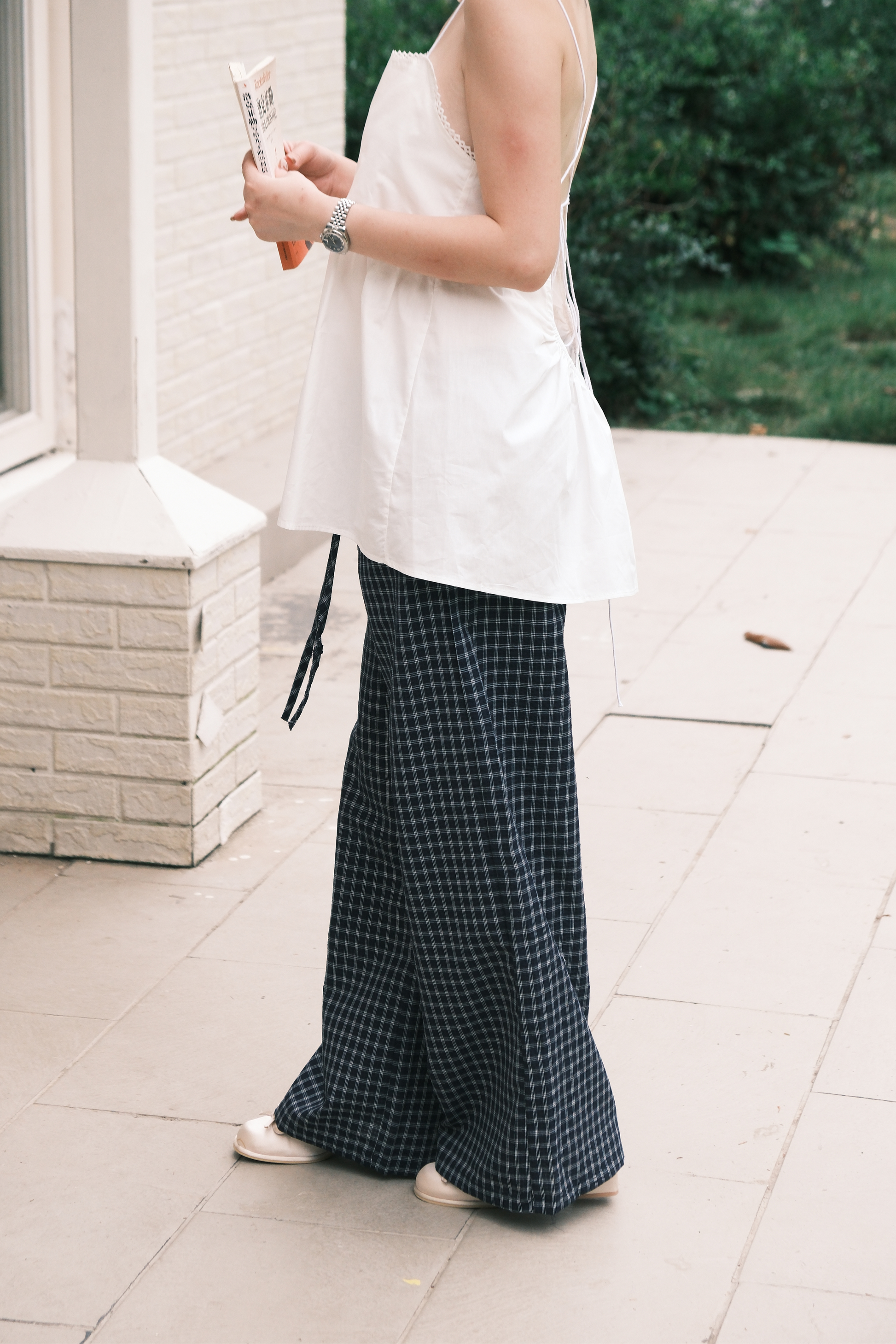 Isla Open-Back Lace Trim Cami Top in White