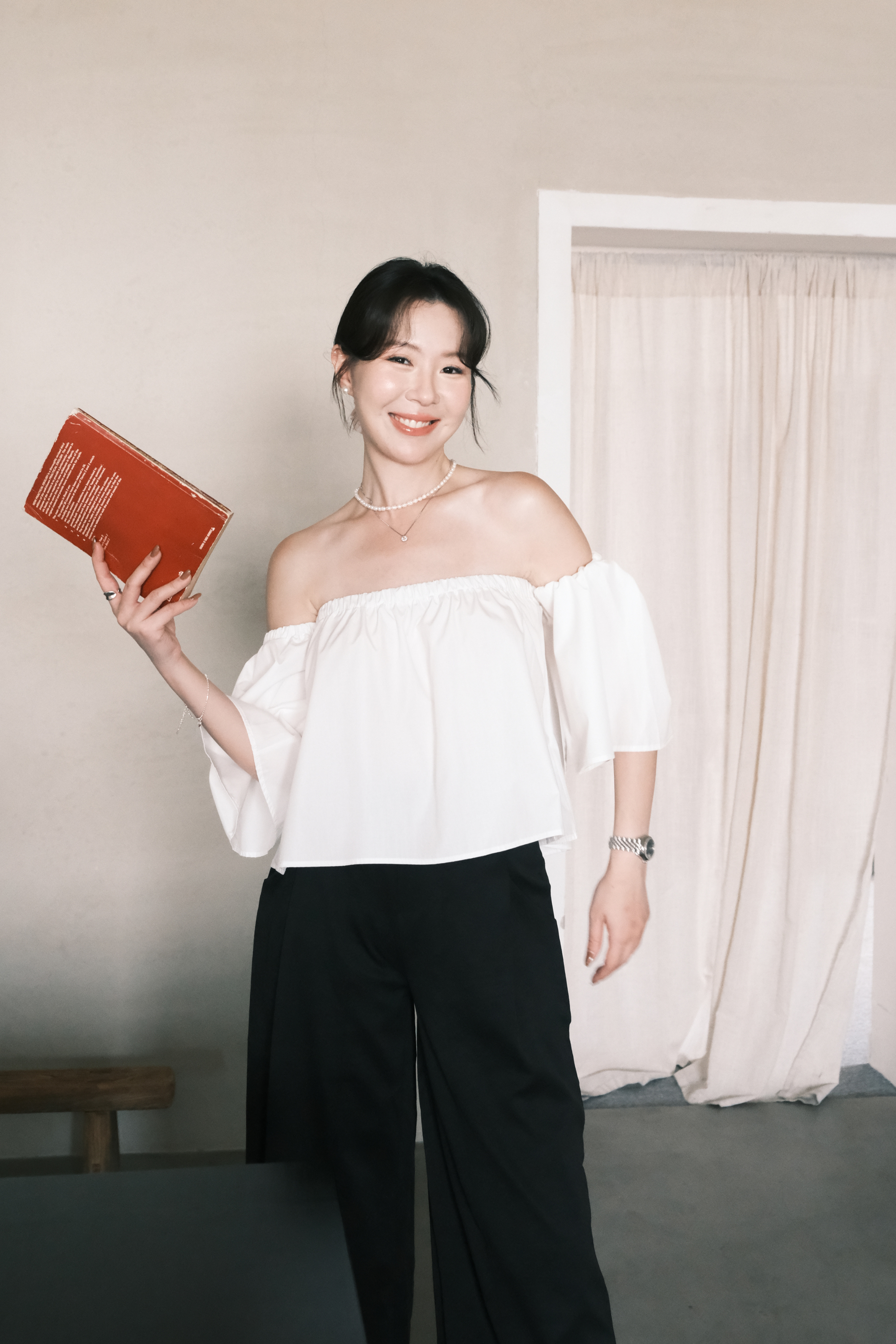 Romantic yet modern, the Odette Off-Shoulder Flare Sleeve Top features a soft elastic neckline that gracefully highlights the shoulders. The voluminous bell sleeves add a French-inspired charm, while its cropped, flowy silhouette brings an effortless sense of lightness — perfect for café dates or summer strolls.