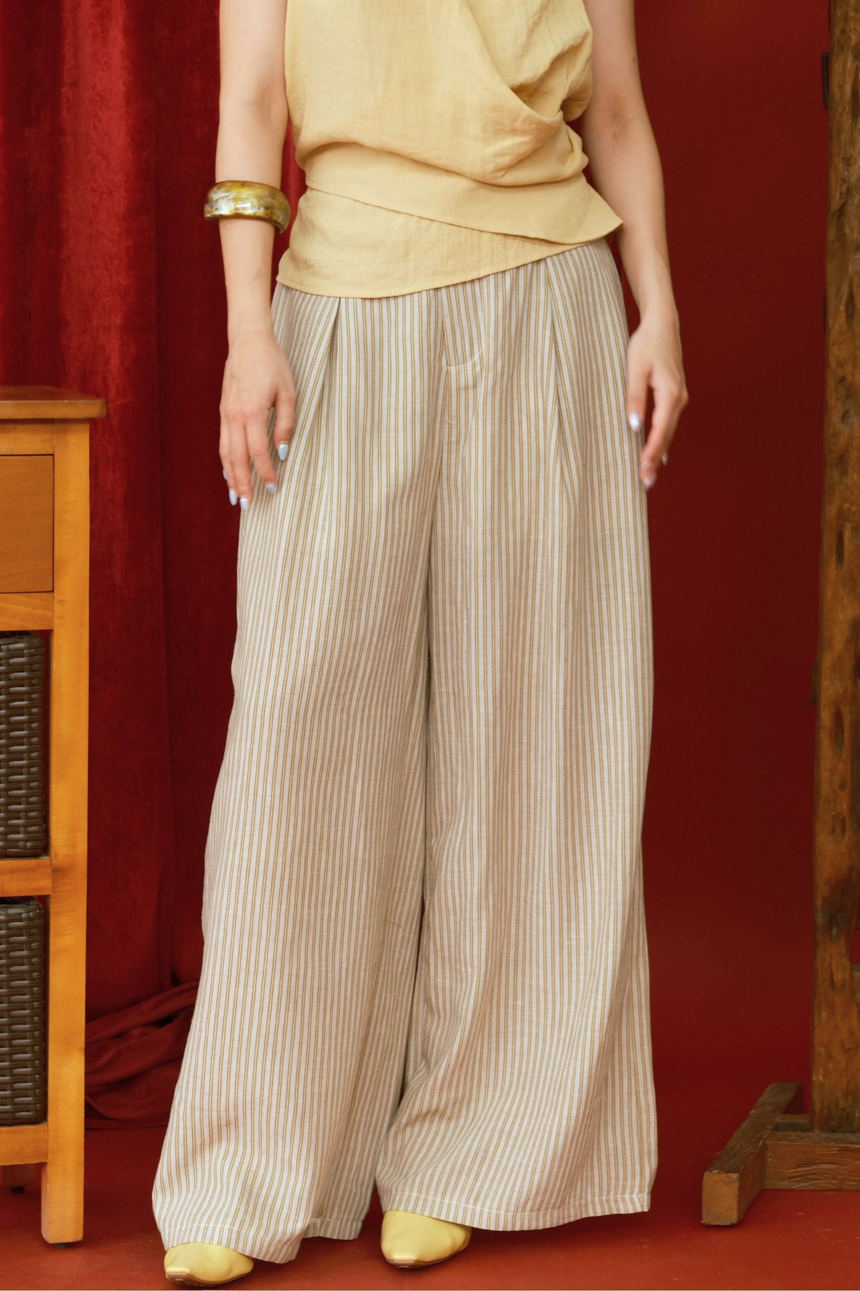 Lightweight and effortlessly fluid, the Alba Whisper Pants feature a relaxed wide-leg silhouette with delicate vertical pinstripes that elongate the form. Crafted for warm days and slow moments, they drape beautifully while offering breathable comfortโperfect for resort strolls or understated city elegance.